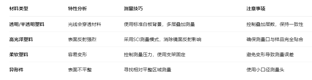 針對(duì)不同特性的塑料材料,需要采用相應(yīng)的測(cè)量技巧: