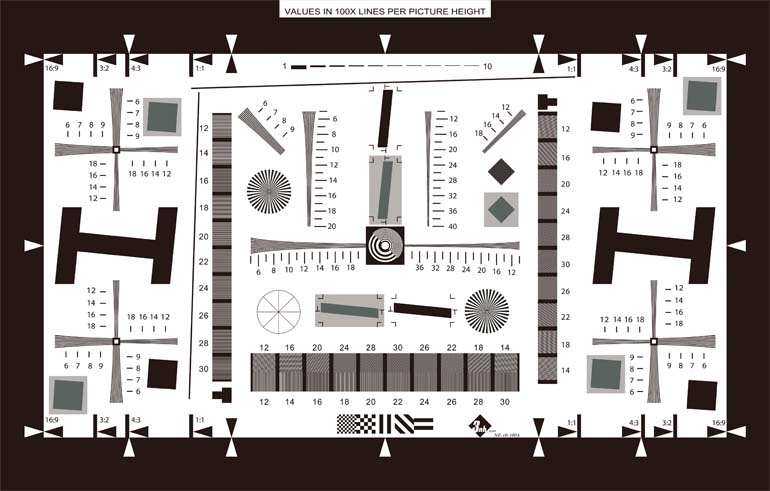 隨著時代的進步 ISO12233 也必須跟著改變,方能跟上日新月異的器材表現。新版解像力測試圖(上圖)已經推出,這張名為 Digital CINE Camera Resolution Chart 同樣是根植于 ISO12233 標準而建立。除了保有原來的測試標準外,也針對未來數字影像器材的發(fā)展,擴大展圖比例,同時也囊括了更高解析度的判讀元素 (針對千萬畫素以上 DSLR),CINE 圖展達 60 cm x 144cm。