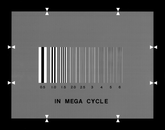This is a Test Chart to evaluate the Horizontal Resolution of an imaging device. In the Chart image, white and black fringes from 0.5MHz to 6MHz in image frequency line vertically. Background is 40% gray.