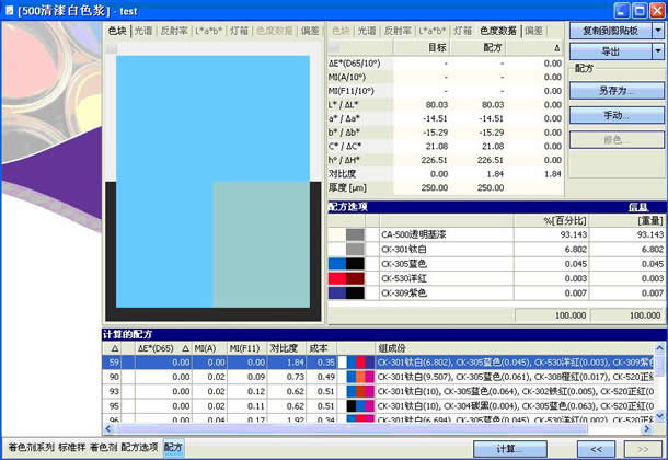 專家系統,顏料性能輸入后,保證配方性能符合要求。