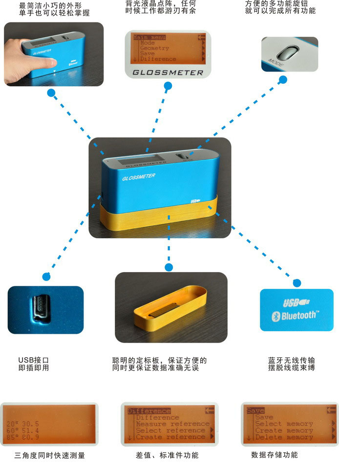 4.測(cè)量面積:20°10×10mm 60°10×20mm 85°8×30mm