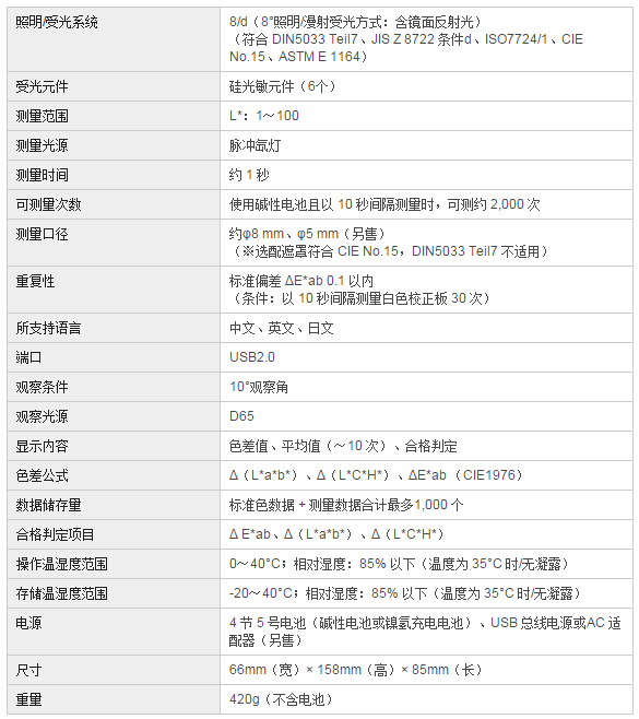1、可選擇目標罩?8mm(標準配件)和?5mm (可選配件),可以測量小面積樣品