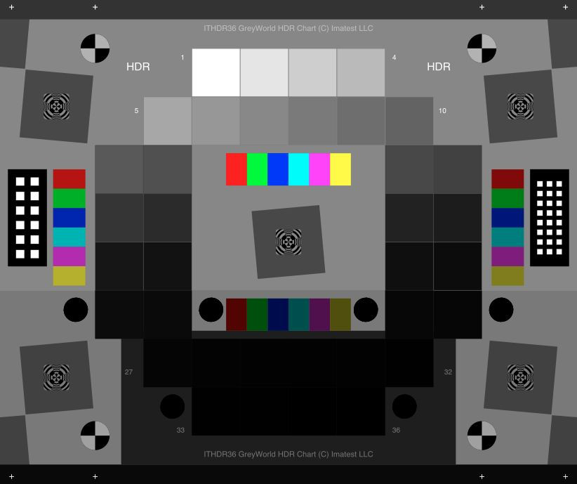高動(dòng)態(tài)范圍測試卡包含了MTF測量的斜邊和灰色背景密度使自動(dòng)曝光相機(jī)適當(dāng)?shù)钠毓狻?/span>