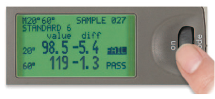 該型號可對較低的光澤度進行高精度測量,非常適用于在公司內部,或者在公司與供應商/客戶間使用多臺光澤度計的情況。可用于測量車輛內飾件等物品。
