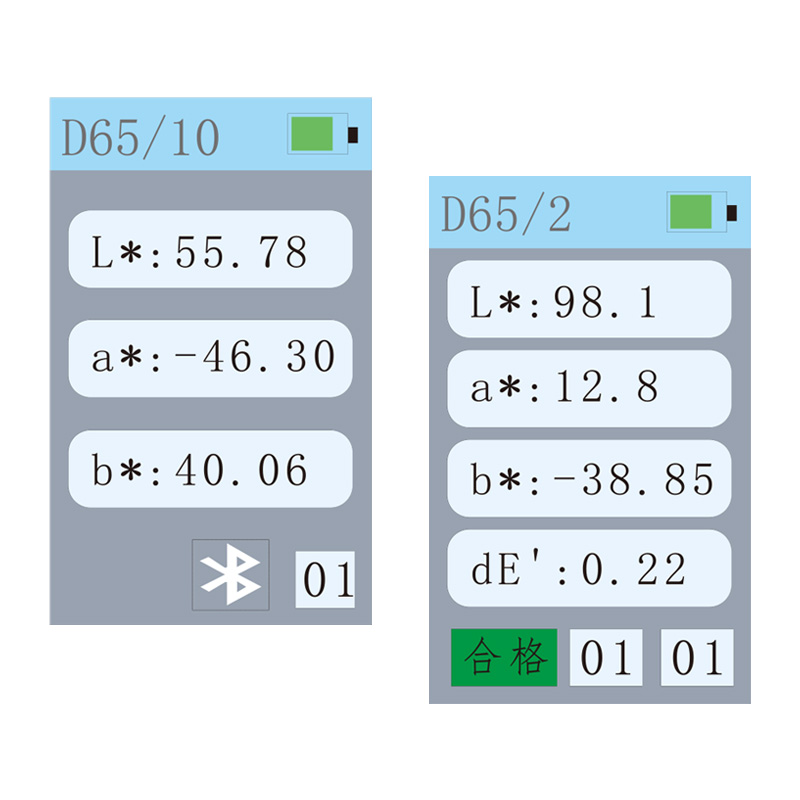 | 顯示 | 樣品色度值,色差值/圖,合格/不合格結(jié)果,顏色仿真,顏色偏向,反射率(部分通過手機(jī)APP實(shí)現(xiàn)) | ||