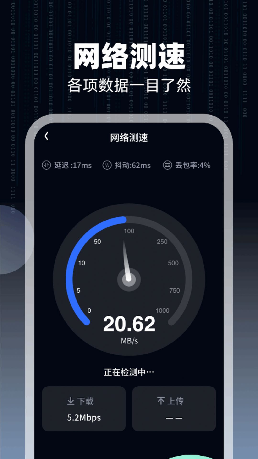 2、具備精準的網絡測速能力,能夠對WiFi信號強度、延遲等參數進行檢測,使用戶可隨時知曉網絡狀態。
