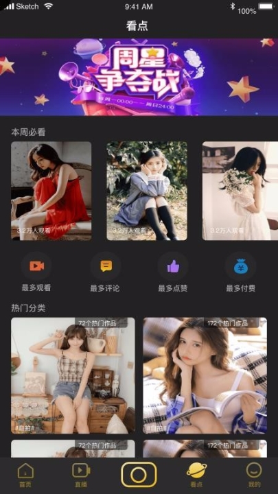 3、打開直播界面,各種類型的直播話題可以隨時選擇