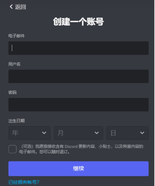 打開谷歌瀏覽器,訪問Discord官網(wǎng),點擊注冊并按要求填寫必要信息。推薦使用outlook郵箱進行注冊,這樣注冊成功率會更高!