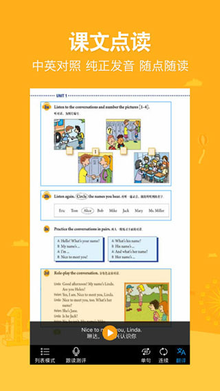 3、課本點讀功能:與初高中英語教材同步,提供純正發音以及貼心的翻譯。支持點讀、連讀和單句復讀操作。