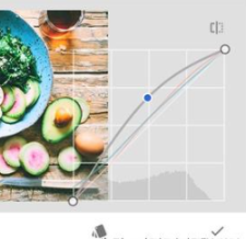 因此,通過曲線工具,可以有選擇的調整畫面中不同區域的亮度。點擊曲線上的一點向上滑動,即可增加該區域的亮度;向下滑動,即可降低該區域的亮度。