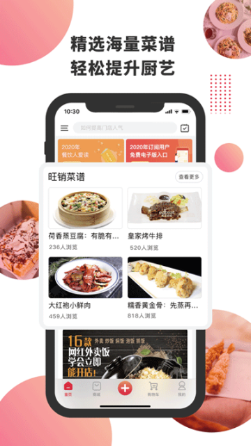 熱門菜譜,依據菜品銷售訂單篩選出暢銷菜品。