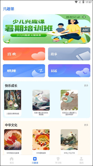 6、點擊進入興趣課,用戶可以在這里全面進行學習,培養孩子的興趣。