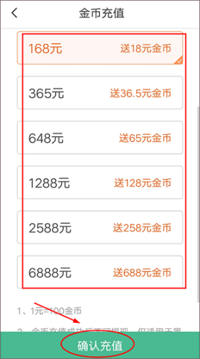 3、打開金幣充值界面,挑選充值金額,點擊【確認充值】按鈕就可以完成操作。