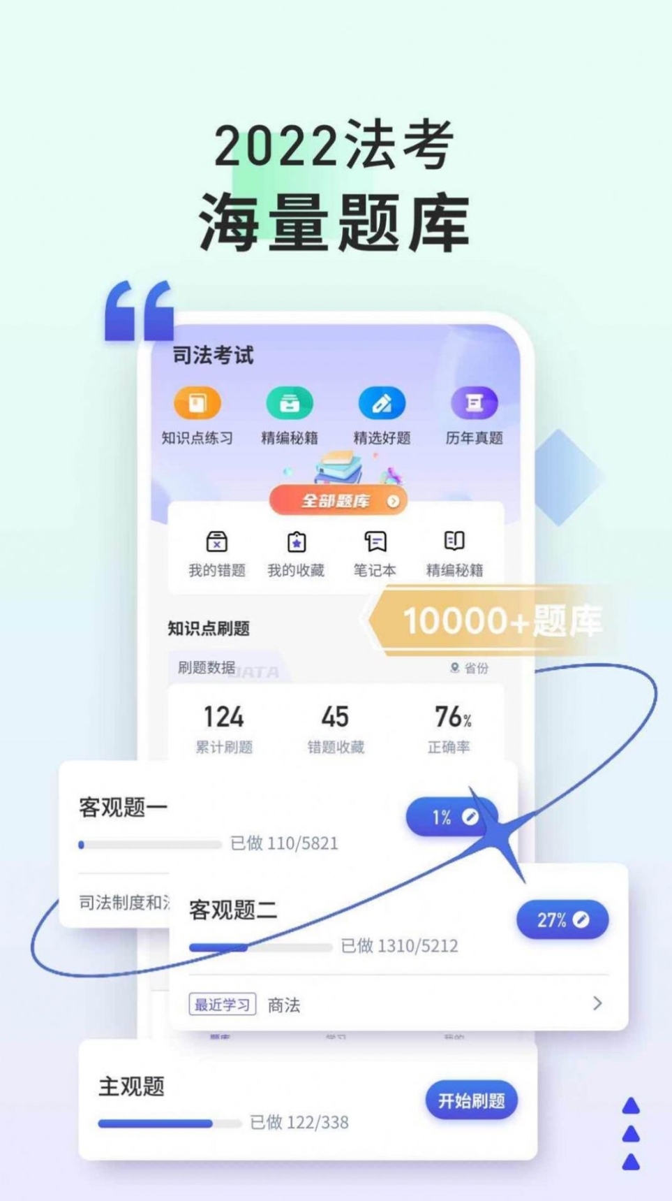 2、上萬道精心挑選的試題,覆蓋刑法、民法、刑事訴訟法、民事訴訟法、理論法學、商經法、行政法以及三國法等法考所有科目。