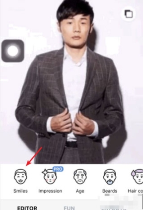 等待照片處理加載后,選擇下方的效果分類,比如點擊微笑。