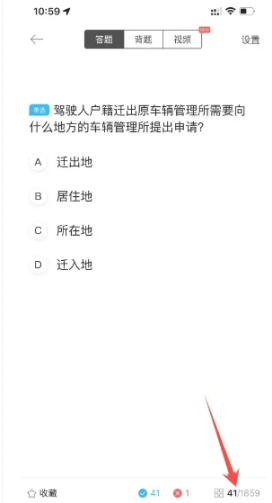 1、在駕考寶典做題的頁面里,點擊右下角的題目數量。