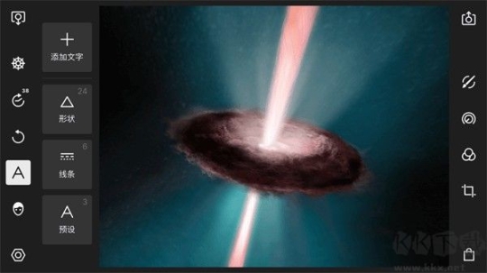“添加文字”選項下一共有12個調整選項。分別為字體選擇、對齊方式、大小、行間距、字母間距、角度、色彩、不透明度、混合、描邊、反選、刪除、復制。