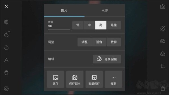 質量:polarr修圖在導出時支持將質量設置為低、中、高、最佳四個檔次,輸出質量越高圖像的整體質量(清晰度、色彩、細節等)就會越高,但圖片體積也會越大。