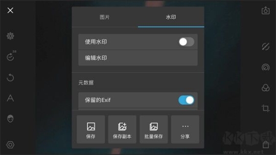 通過導出照片功能我們可以對導出的照片進行設置,包括圖片、水印兩個大項。