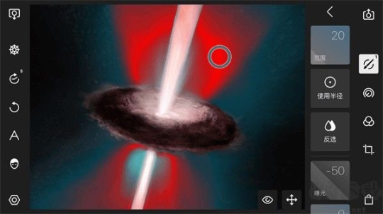 利用筆刷功能,可以手動繪制調整區域,所有的調整只會影響到這些區域。當選中筆刷工具之后,可以使用手指繪制一個區域,在繪制過程中,會有一個紅色的區域出現,這些區域就表示被選中的區域。