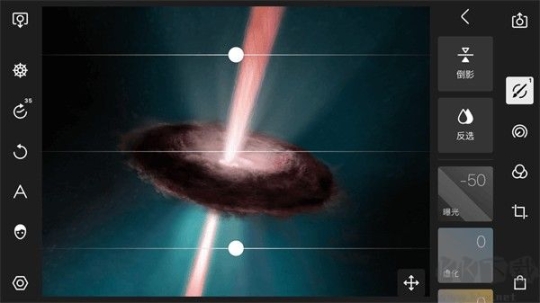 利用裁剪功能,我們可以實現對畫面內容的剪切、旋轉和翻轉,裁剪面板下一共包含五個工具:比例、旋轉、翻轉X、翻轉Y、重置。