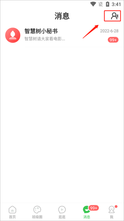 1、打開智慧樹家長端app,在底部菜單欄點擊進入消息界面。