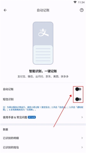2、能夠讓大家開啟非常方便的自動記賬功能,可以自動抓取各個軟件花銷。
