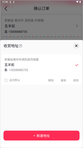 用戶能夠在抖音商城app(也就是抖音商城版app)的訂單提交確認頁面,點擊此前自己的收貨地址。