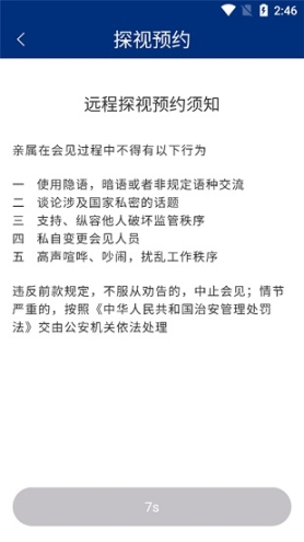 3、瀏覽遠程探視須知,不得使用隱語、暗語,談論射擊國家私密話題、私自變更會見人、高聲喧嘩等等;
