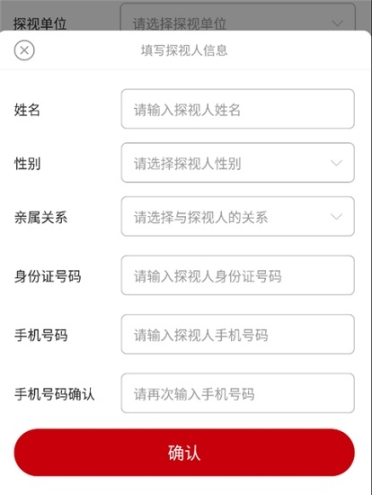 5、然后輸入探視人的姓名、性別、親屬關系、身份證號、手機號等信息,確認后點擊預約即可。