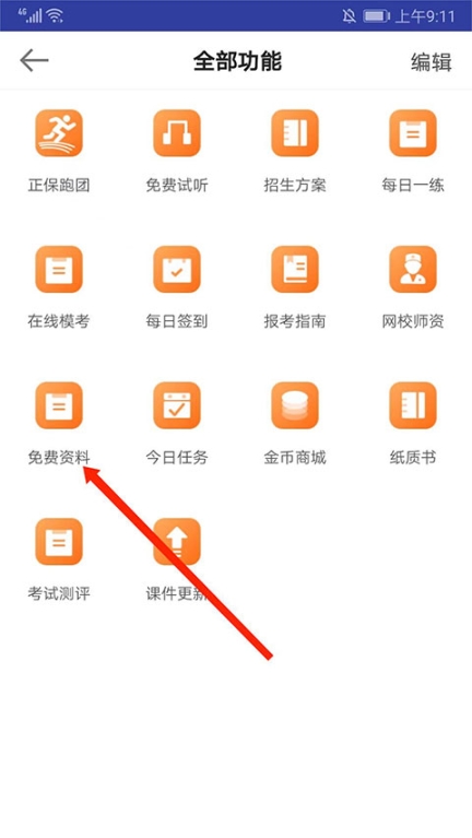 2、進(jìn)入全部功能界面,選擇“免費(fèi)資料”選項(xiàng),