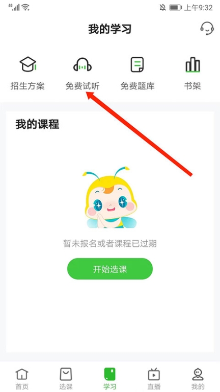 2、進(jìn)入我的學(xué)習(xí)界面,選擇上方“免費(fèi)試聽(tīng)”選項(xiàng),