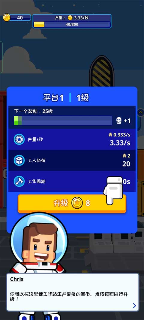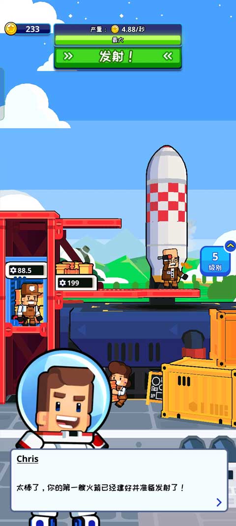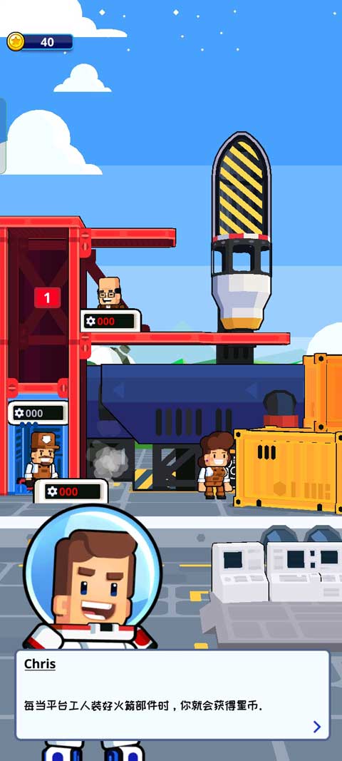 3、每當(dāng)平臺的工人裝好火箭部件時,就能獲得星幣。