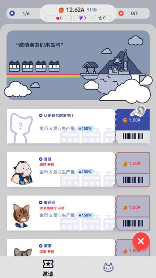 升級、建造島嶼中的各種建筑物,都能為你帶來不錯的金幣收益,而且點擊貓咪頭上的愛心還能收集愛心值哦。