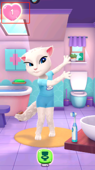 4、上完廁所后小貓美女的心情就會(huì)變好了,可以看到左上方得到了一顆心心啦。