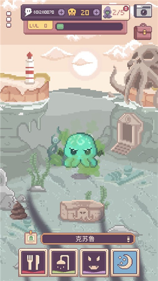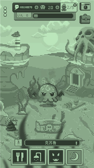 克蘇魯寵物2采用像素畫風,簡單的場景,標準的獨立小游戲的風格,游戲美術比較簡單也比較Q萌。