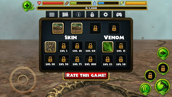 通過此游戲,你可以更加了解蟒蛇的生活習性,感受蟒蛇的視角,游戲擁有龐大的生態系統,其中有24個獨特的叢林物種,你將會面臨天敵,所以你在捕食的過程中也不要忘記注意查看天敵的所在,這樣能夠保證自己的存活率。此外,蟒蛇模擬器游戲還有健康值系統,你需要維持你的身心健康,饑餓度,口渴度和活力,要在敵對的森林里生存,隨著生存時間長短,蟒蛇的等級也會上升,然后你可以升級你的蛇,以提升她們的健康,攻擊傷害,乃至像開啟毒液等新的能力。