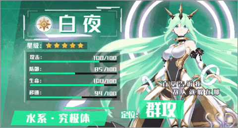 英雄名稱:白夜;英雄陣營:光系;英雄品質:UR