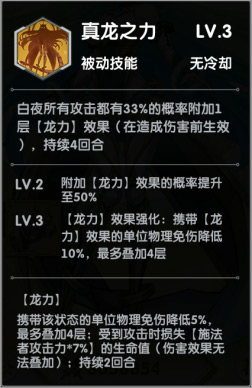 白龍所有共計都有概率附加1層【龍力】效果,(在造成傷害前生效),持續4回合。