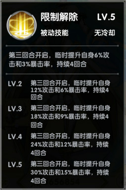 第三回合開啟,臨時提升自身攻擊和暴擊率,持續4回合。