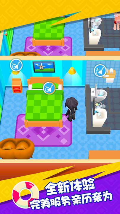 幸福度假村最新版,是一款上手輕松的模擬經營類游戲。游戲伊始,玩家得從基層工作起步,比如親自接待客人、親自送餐,以此滿足客人的需求。隨著資金的不斷積累,持續對房間和設施進行升級,就能擴大經營的范圍與面積,從而為顧客打造更為舒適且全面的服務體驗。面積一旦擴張,就需要指派更多人手來處理各項事務。招聘前臺,能幫你辦理客人入住手續;雇傭服務員,則可為有需求的客人提供送餐服務。往后業務增多,雇傭員工還能幫你分擔其他事務。身為經營者與管理者,你得設法縮短顧客等待的時間。