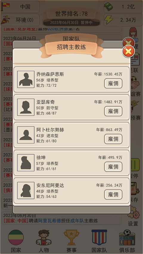 《足協(xié)模擬器》是一款文字放置型模擬足球游戲。在國家足球事業(yè)面臨危難之時,你被選中接手足協(xié)重任,國家期望你能引領(lǐng)中國足球重回正軌,邁向世界舞臺。此刻,你能在游戲中扭轉(zhuǎn)這一局面,游戲里有諸多模式與方法助力提升國足實力,你還擁有專屬模式來開展足球?qū)?zhàn)。