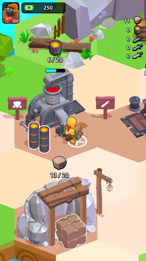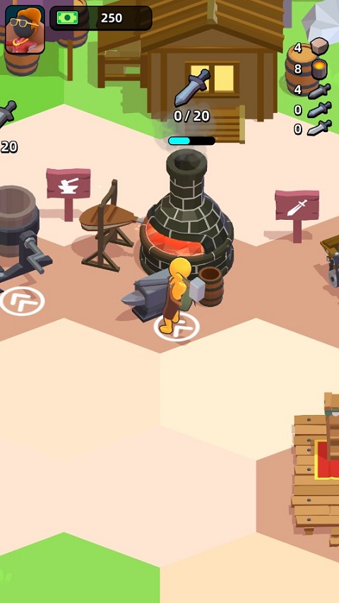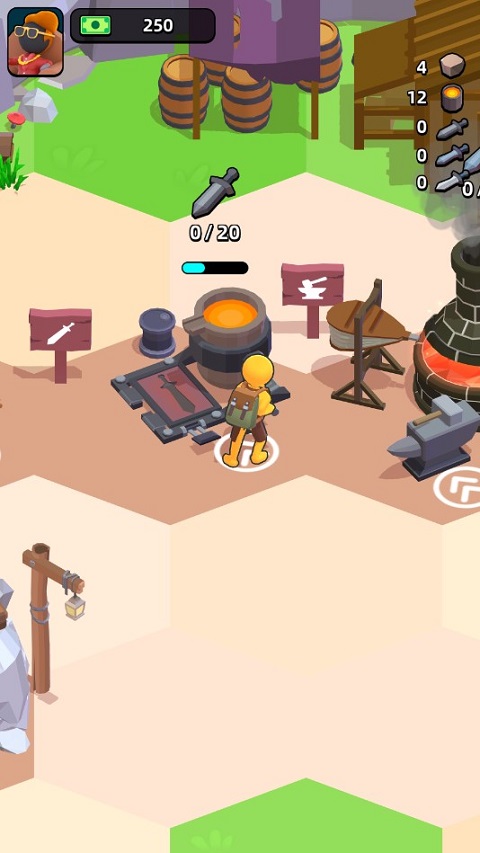 1、這是一款模擬經營武器店的趣味游戲,玩家能在其中鍛造超神武器,玩法十分簡單。