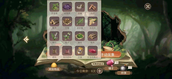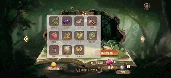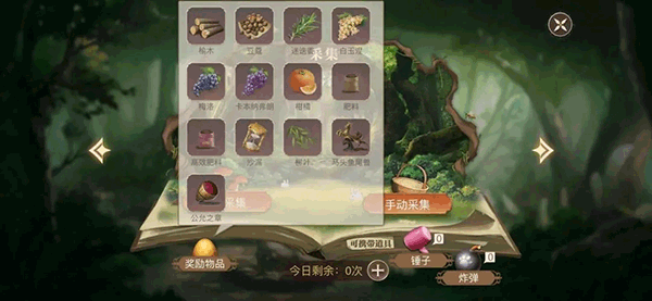 游戲中有些材料,是無法通過種植養殖獲取的,只能夠用另一個地圖中的“采集、打獵、挖礦(未開通)”獲取,比如:百里香、白玉涅、榆木、豆蔻、薄荷等等,這些材料是主線任務必備的,更是星座任務和傳記任務必備的(星座和傳記我后面會講),而采集、打獵、挖礦的次數每天只有三次,即使鉆石購買次數,也只可以額外購買三次,也就是我開頭說的3+3。