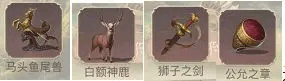 T3級別:馬頭魚尾獸、白額神鹿、獅子之劍、公允之章(簡稱馬頭、白鹿、寶劍、公章)