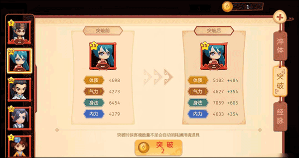 通過直接吃經驗丹或上陣打怪可獲得俠客經驗,然后突破升級。(經驗丹通過門派丹爐可煉制,或通過刷副本也有固定的小還丹產出)