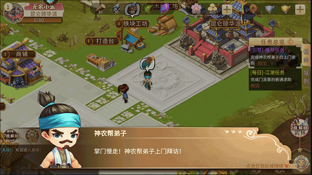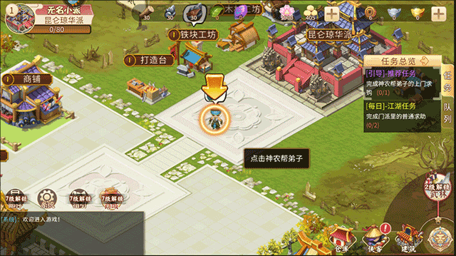 4、接著,在主城區域點擊神農幫弟子進行對話;