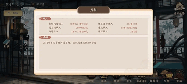 如果3年3月還沒考中科舉基本就涼了,可以考慮快進重來。后期的賺錢核心一字記之曰:躺