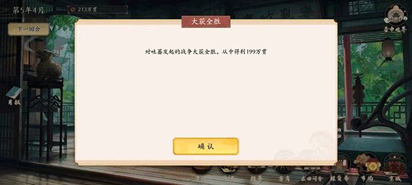 當你擁有了三家連坐的青樓和兩家質庫,你需要做的只有一件事情,那就是按左上角的按鈕跳過回合。