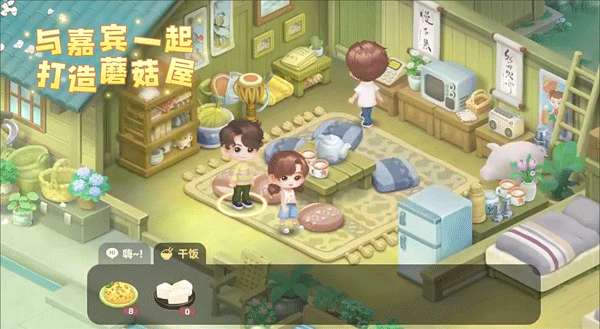 玩家會在蘑菇屋和嘉賓一起吃飯、聊天,打造屬于我們自己的房子。